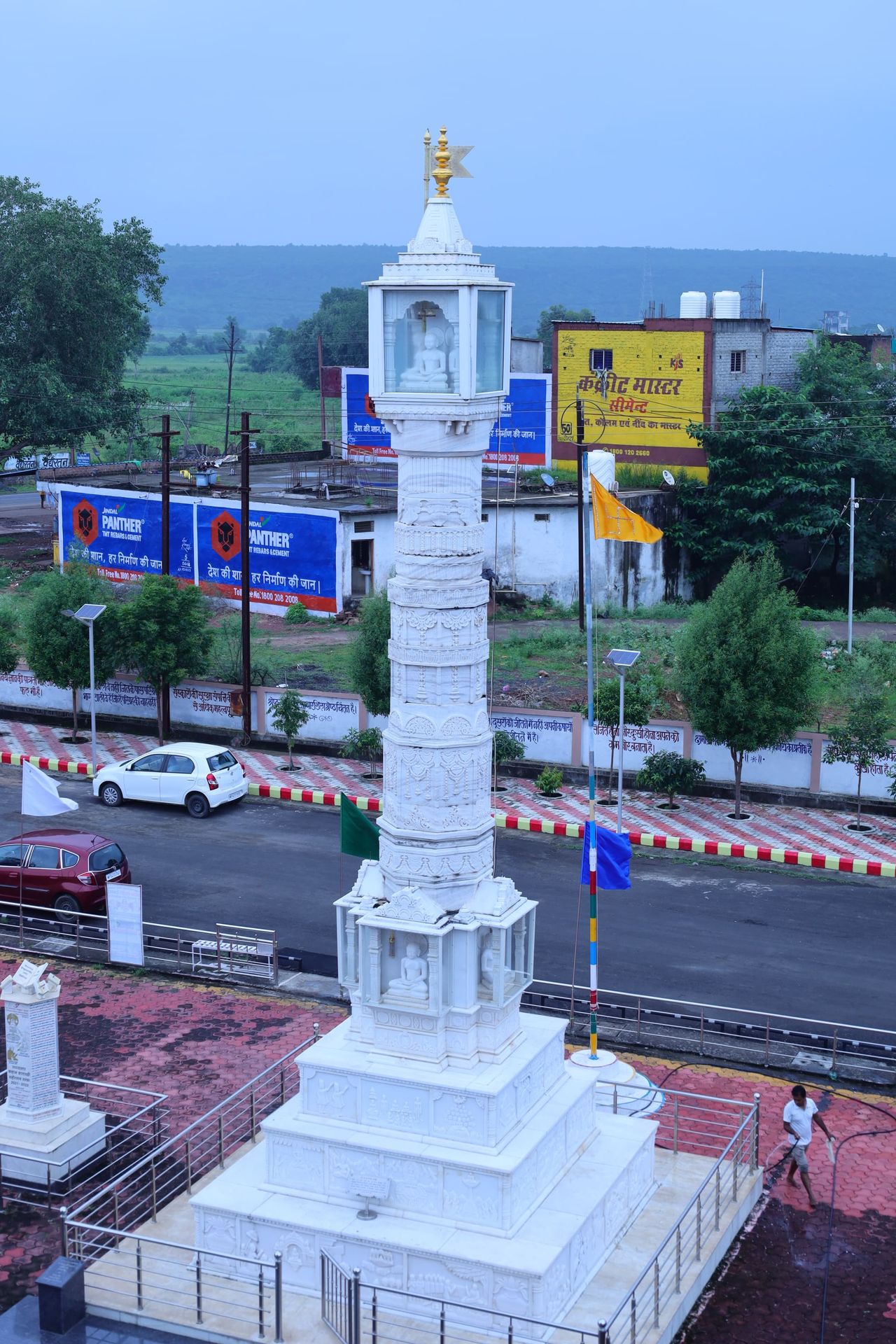 जिनालय के समक्ष 1008 श्री पार्श्ववनाथ स्वामी के अष्ट जिनबिम्ब युक्त धवल संगमरमर से निर्मित मनोहारी मानस्तम्भ स्थित है।